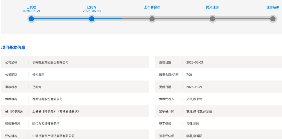 今年5月21日,长裕集团IPO获受理,保荐机构为西南证券。值得一提的是,在获受理近两个月,即今年7月,该公司被抽中现场检查。
